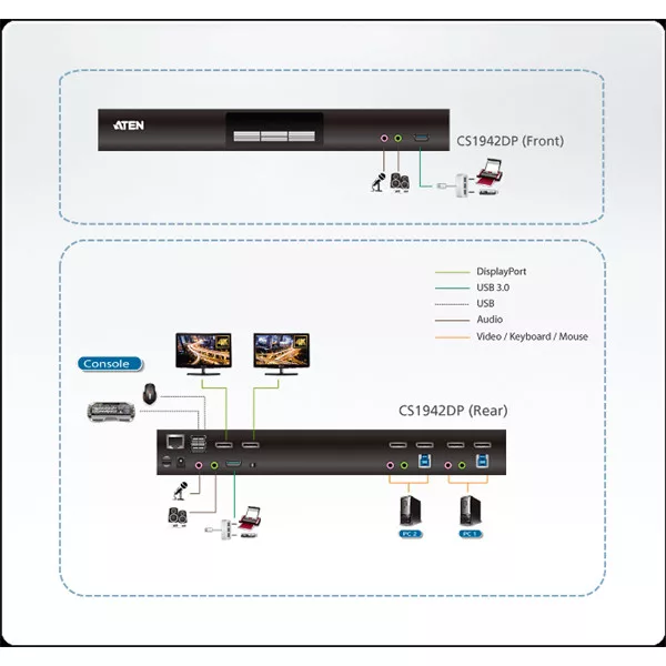 ATEN KVMP Switch USB 3.0, 4K DisplayPort, Dual Display, 2 port - CS1942DP