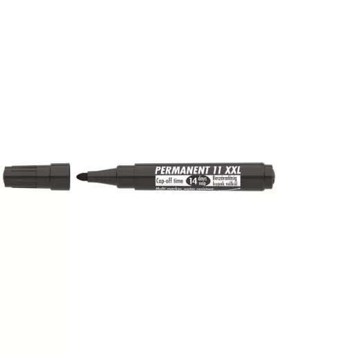 Műanyag, üveg, fém, fa, illetve szinte minden felület feliratozására, jelölésére alkalmas, alkoholbázisú festékkel töltött permanent marker. Speciális tulajdonsága, hogy 14 napig kupak nélkül sem szárad be. Gyorsan száradó festék, írásképe törlés- és vízálló. Megnövelt élettartam a nagyobb méretű testnek köszönhetően. Kerek csúccsal. 10DB/DOBOZ alkoholos filc Katalóguskód: 15464