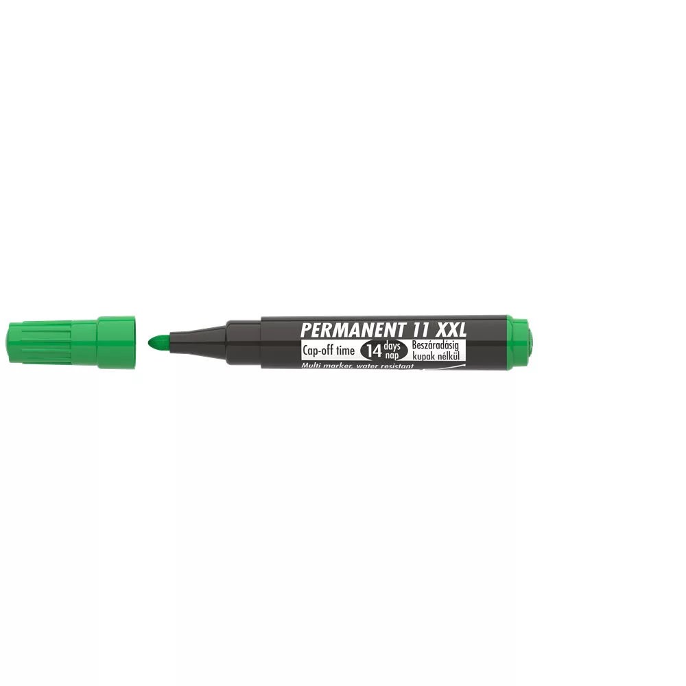 Műanyag, üveg, fém, fa, illetve szinte minden felület feliratozására, jelölésére alkalmas, alkoholbázisú festékkel töltött permanent marker. Speciális tulajdonsága, hogy 14 napig kupak nélkül sem szárad be. Gyorsan száradó festék, írásképe törlés- és vízálló. Megnövelt élettartam a nagyobb méretű testnek köszönhetően. Kerek és vágott csúccsal. Katalóguskód: 24646