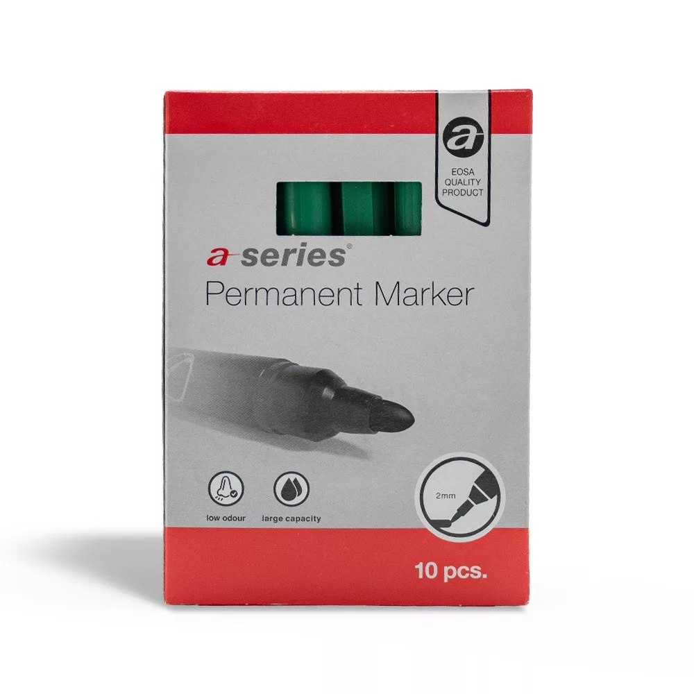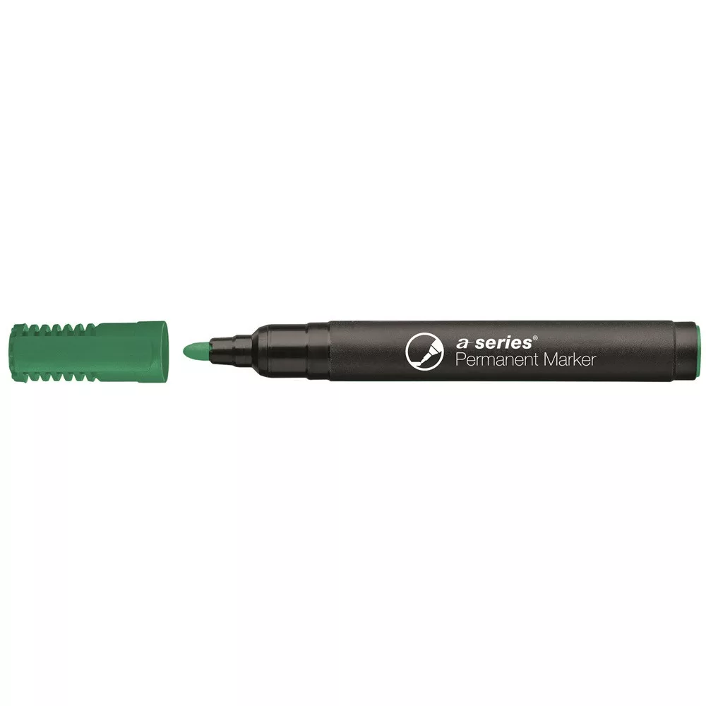 "Műanyag, üveg, fém, fa, illetve szinte minden felület feliratozására, jelölésére alkalmas, alkoholbázisú festékkel töltött permanent marker vastag írócsúccsal. A kerekített csúcs vonalvastagsága: 3 mm. Írásképe gyorsan száradó, vízálló, fény- és kopásálló. Írásképe vízálló, kerek csúccsal és légmentesen záró kupakkal. Test színe fehér, az írásszín egyértelmű megjelölésével. 10db/doboz 600db/gyűjtő" Katalóguskód: 12161