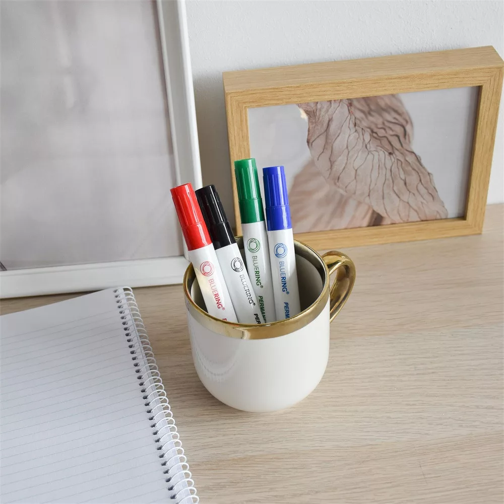 Írásképe vízálló, kerek csúccsal és légmentesen záró kupakkal. Test színe fehér, az írásszín egyértelmű megjelölésével. Készlet írásszínei: kék, fekete,piros,zöld.