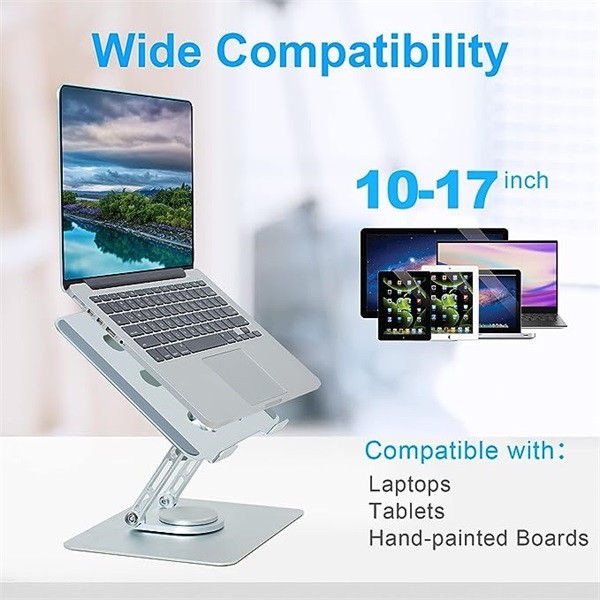 360°-OS ELFORGATÁS: A laptopállvány segítségével könnyedén elforgathatja laptopját vízszintesen, és a kívánt irányba rögzítheti. A forgatható kijelző állvány megkönnyíti a kommunikációt a kollégákkal anélkül, hogy el kellene mozgatnia a laptopját, ami nagyszerű kényelmet biztosít.
