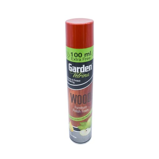 Garden Vetrina bútorápoló aerosol könnyedén megújítja fából készült bútorait, ragyogóvá és védetté téve azokat. A zöldalma friss illata kellemes légkört teremt otthonában. Előnyök: könnyű használat: Aeroszol kiszerelés, egyszerű felvitellel. Védelem: Védi a bútorokat a karcolásoktól és a kiszáradástól.