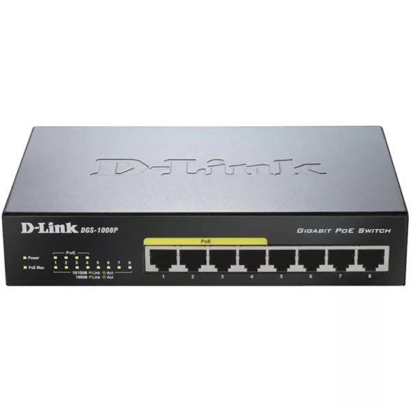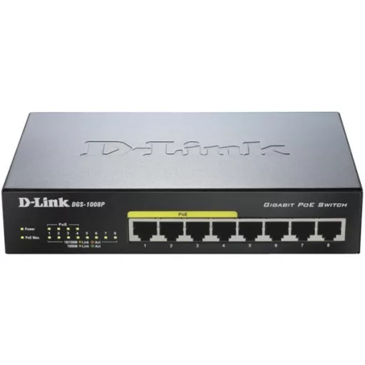 D-LINK Switch 8x1000Mbps (4xPOE) Menedzselhető Fémházas Asztali, DGS-1008P/E