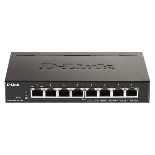 D-LINK Switch 8x1000Mbps (8xPOE) Fémházas Asztali Menedzselhető, DGS-1100-08PV2/E
