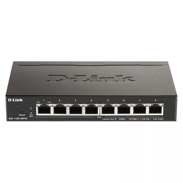 D-LINK Switch 8x1000Mbps Fémházas Asztali Menedzselhető, DGS-1100-08V2/E