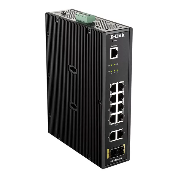 DIS-200G-12PSW 8 x 10/100/1000 Mbps PoE ports + 2 x 10/100/1000 Mbps ports + 2 x SFP ports switch with -40 to 75 °C operating range
