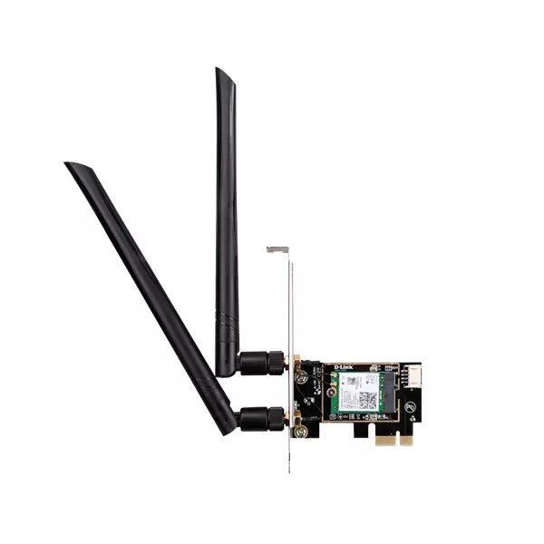 Technical Specifications General Interface • PCI Express (PCIe) • 2 x RP-SMA Connectors • F-USB Antennas • Two 5 dBi detachable antennas Wireless Frequency • 2.4 GHz • 5 GHz Wireless Standards • IEEE 802.11ax/ac/n/a 5 GHz • IEEE 802.11ax/n/g/b 2.4 GHz • BT 5.1 Security • The latest Wi-Fi security with 128-bit encryption • WEP (64/128 bit) Advanced Features • Bluetooth 5.1 System Requirements • Windows 10 64-bit • Linux 5.1 and later Physical Dimensions • 121 x 79 x 25 mm (4.76 x 3.11 x 0.98 inches) Weight • 87 grams (3.07 ounces) Temperature • Operating: 0 to 40 °C (32 to 103 °F) • Storage: -20 to 65 °C (-4 to 149 °F) Humidity • Operating: 10% to 90% non-condensing • Storage: 5% to 95% non-condensing Certifications • CE • FCC Order Information Part Number Description DWA-X582 AX3000 Wi-Fi 6 PCIe Adapter with Bluetooth 5.1