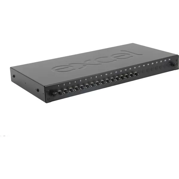 EXCEL Optikai Patch Panel 1U MM ST 24 port, 16 ST toldóval töltve