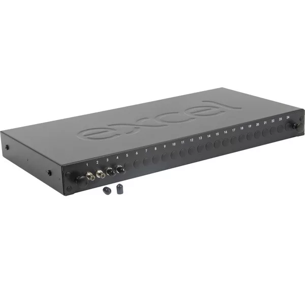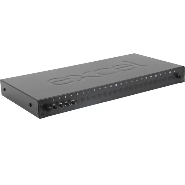 EXCEL Optikai Patch Panel 1U MM ST 24 port, 4 ST toldóval töltve EXCEL Optikai Patch Panel 1U MM ST 24 port, 4 ST toldóval töltve