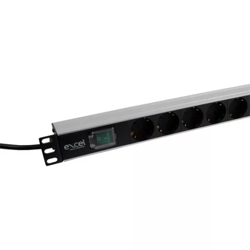 EXCEL Rackbe szerelhető Elosztó 8xSCHUKO kapcsolóval, 2 méteres vezeték