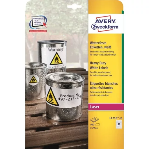 Etikett címke, O30mm, időjárásálló poliészter, 48 címke/ív, 20 ív/doboz, Avery fehér Etikett címke, O30mm, időjárásálló poliészter, 48 címke/ív, 20 ív/doboz, Avery fehér Etikett címke, O30mm, időjárásálló poliészter, 48 címke/ív, 20 ív/doboz, Avery fehér