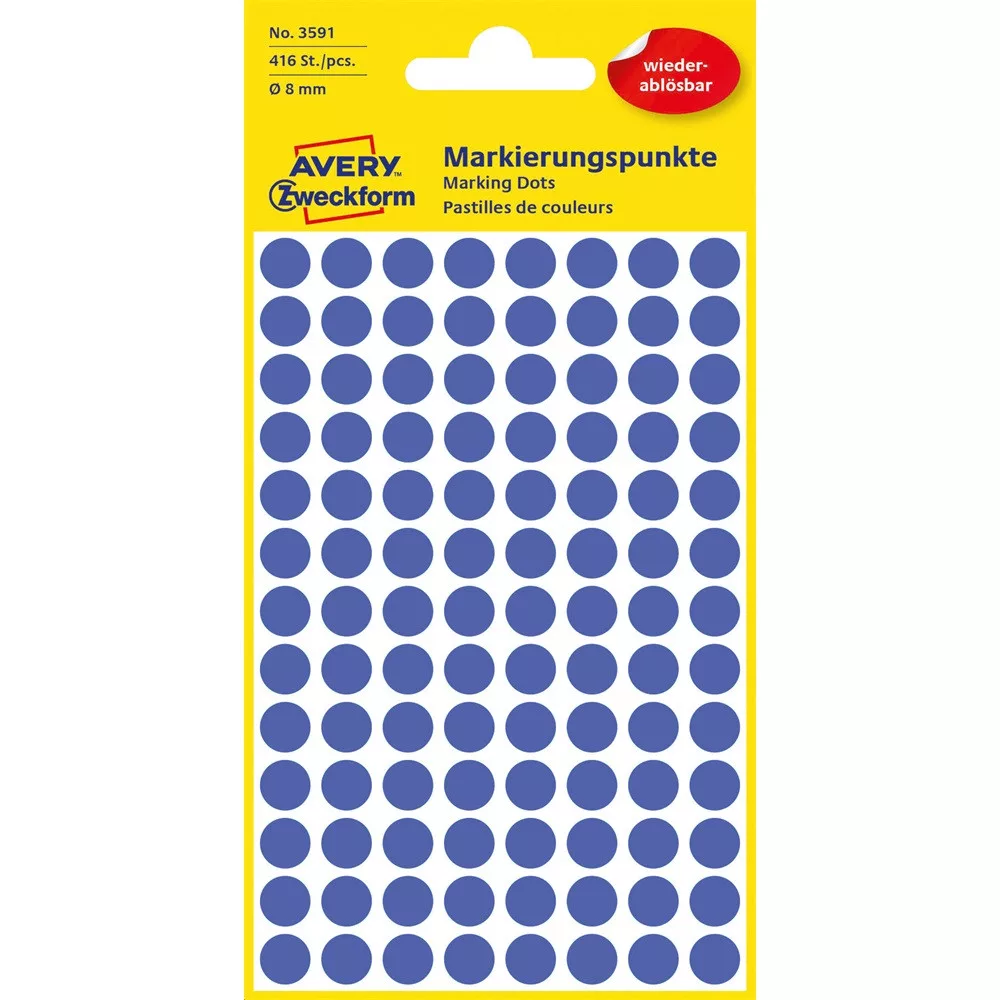 Etikett címke, O8mm, visszaszedhető, 104 címke/ív, 4 ív/doboz, Avery indigó kék