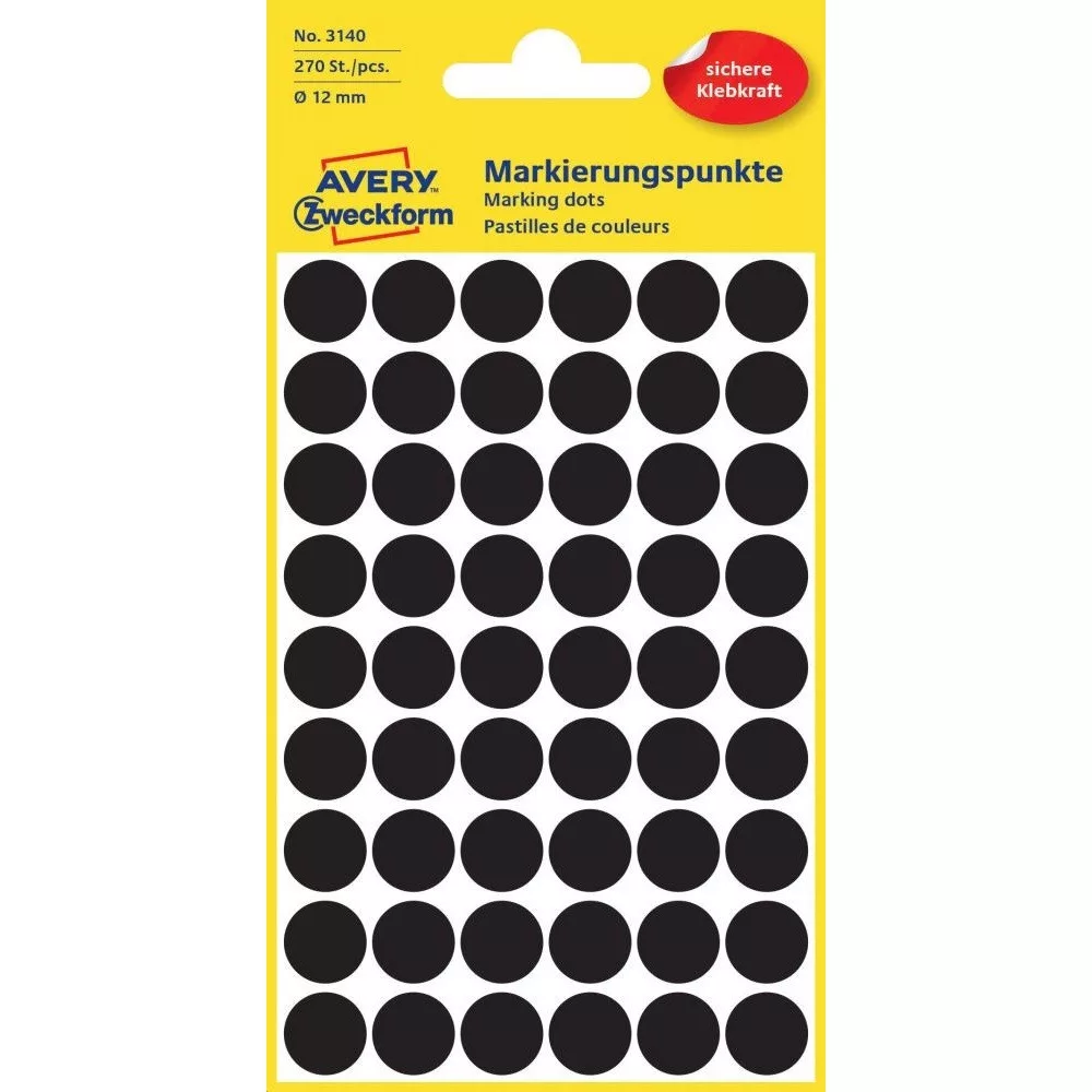 Etikett címke, o12mm, jelölésre, 54 címke/ív, 5 ív/doboz, Avery fekete