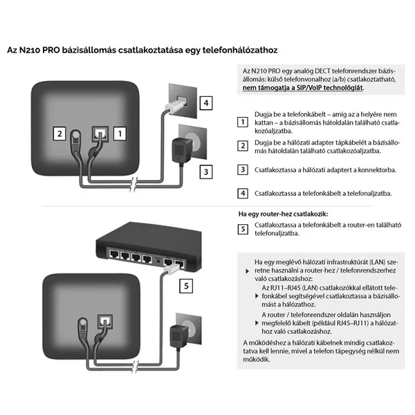 Az N210 PRO bázisállomás nem támogatja a SIP/VoIP technológiát.