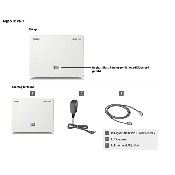 Csomag tartalma: 1x bázisállomás, 1x tápegység, 1x LAN kábel.
