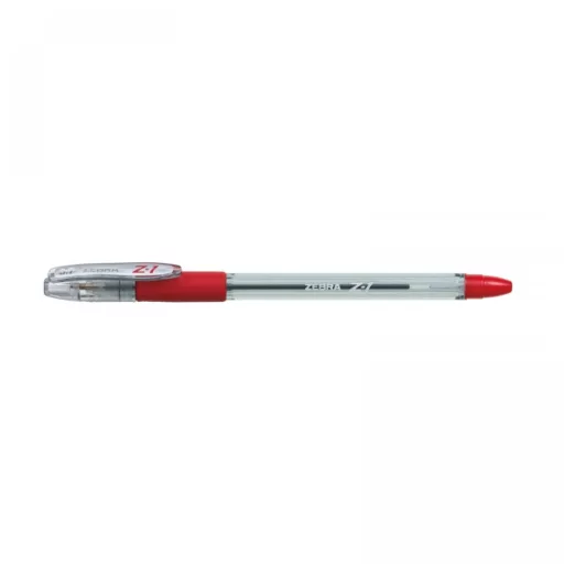 Cserélhető betétes golyóstoll, átlátszó műanyag testtel, gumírozott markolattal. Az alacsony viszkozitású tinta lágy írásmódot tesz lehetővé. A fogórész megegyezik a tinta színével. Tinta színe piros. Golyóátmérő: 0,7 mm, írásvastagság: 0,24 mm. Betét: ZA. 12db/gyűjtő, 864db/karton. Katalóguskód: 786
