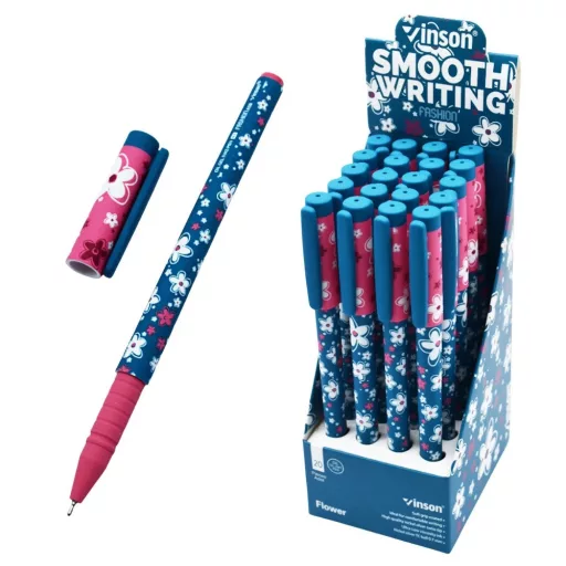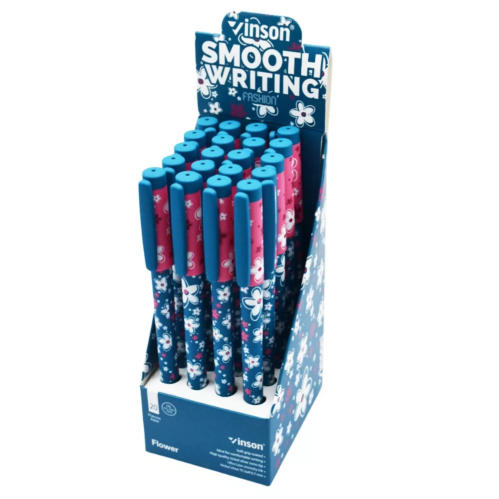 Golyóstoll kupakos, 0,7mm Vinson Flower A18 vegyes test displ 20 db/display Golyóstoll kupakos, 0,7mm Vinson Flower A18 vegyes test displ 20 db/display