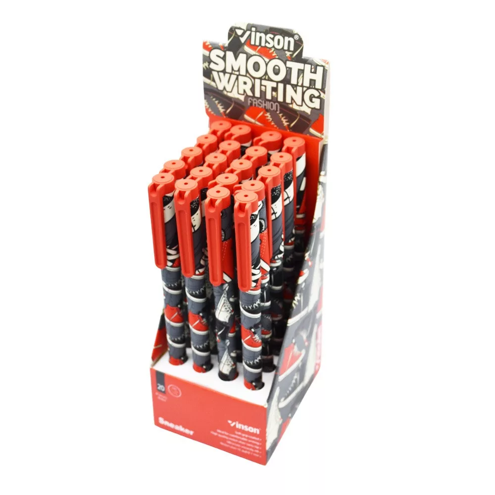 Golyóstoll kupakos, 0,7mm Vinson Sneaker A188 vegyes test displ 20 db/display Golyóstoll kupakos, 0,7mm Vinson Sneaker A188 vegyes test displ 20 db/display