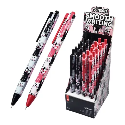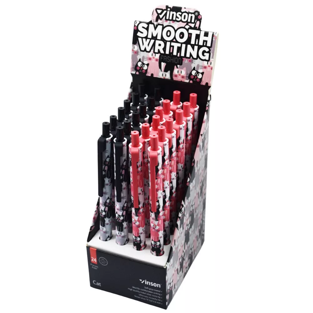 Golyóstoll nyomógombos 0,7mm Vinson Cat F2 vegyes test displ 24 db/display Golyóstoll nyomógombos 0,7mm Vinson Cat F2 vegyes test displ 24 db/display