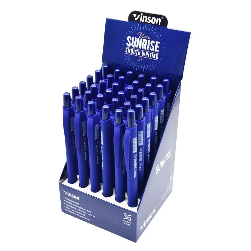 Golyóstoll nyomógombos 0,7mm Vinson Sunrise P12 kék test displ 36 db/display Golyóstoll nyomógombos 0,7mm Vinson Sunrise P12 kék test displ 36 db/display