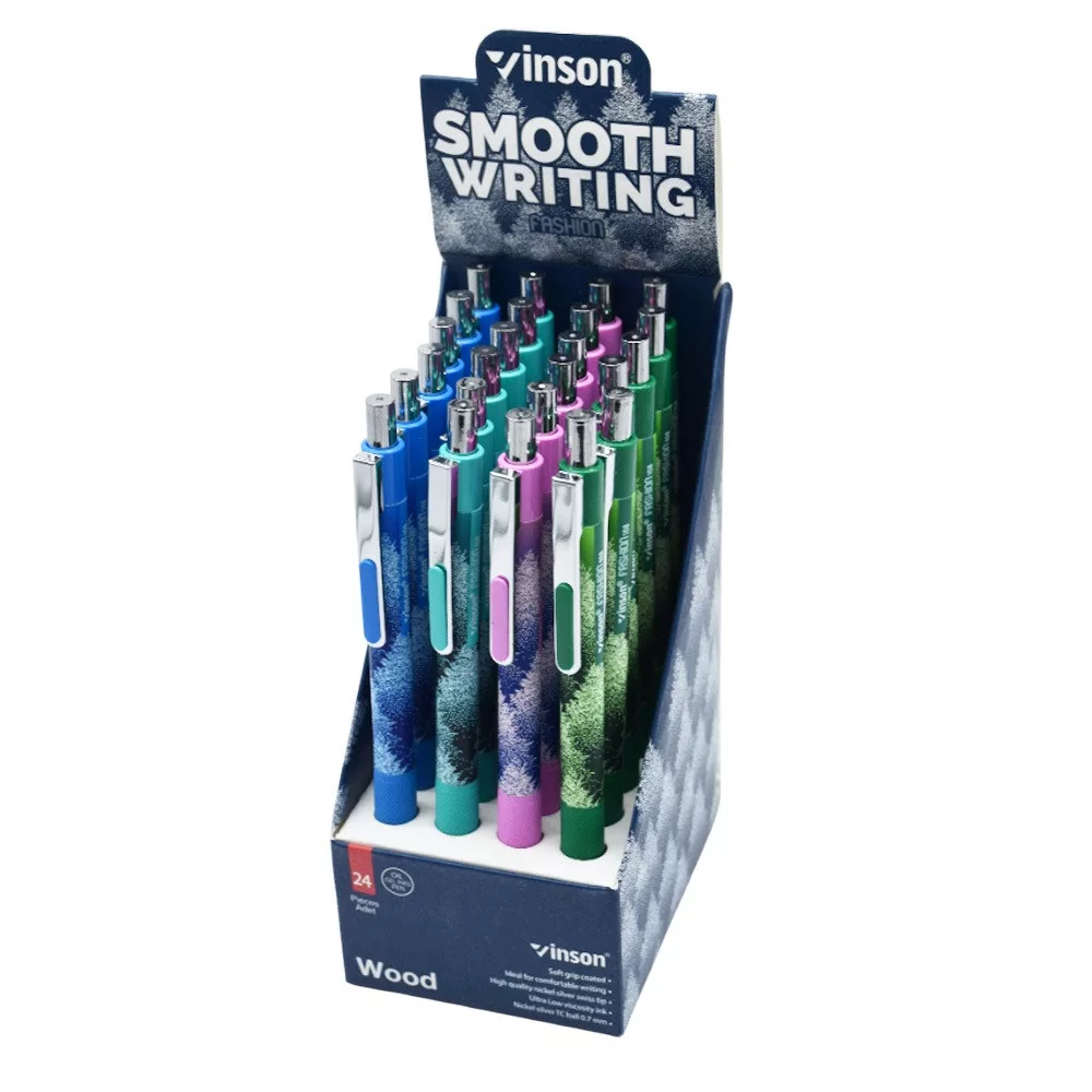 Golyóstoll nyomógombos 0,7mm Vinson Wood 108 vegyes test displ 24 db/display Golyóstoll nyomógombos 0,7mm Vinson Wood 108 vegyes test displ 24 db/display