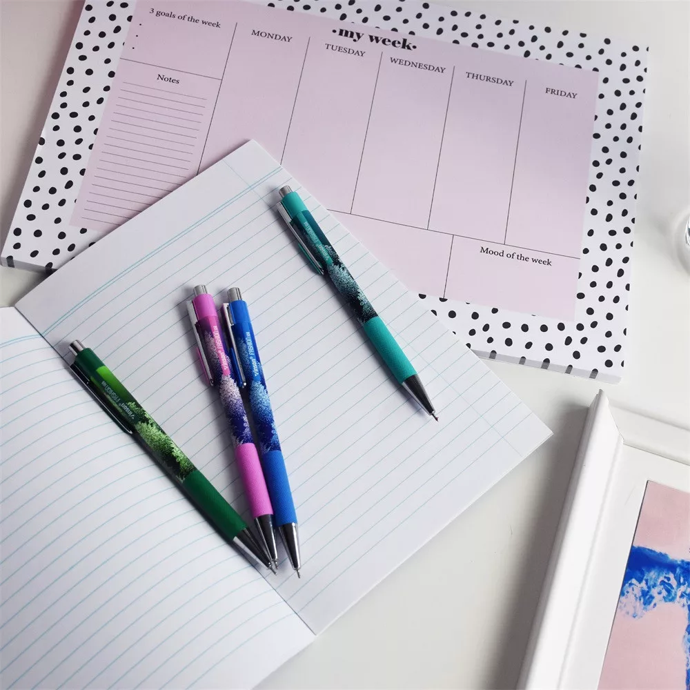 Élvezd az írást! Nyomógombos golyóstoll, az ergonomikusan kialakított puha markolat ideális fogást biztosít minden használó számára. Magas minőségű svájci hegy, 0,7 mm golyómérettel, 0,35 mm írásvastagsággal. Olaj bázisú tintának köszönhetően az írás gyors és könnyed.