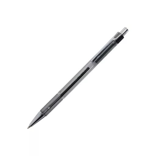 Átlátszó testű nyomógombos tollszerkezet és gumírozott tolltest. Bordázott fogórész. Egyedi kialakítású test desing! Írásszíne megegyezik a nyomógomb és a fogórésszel. Golyóméret: 0,7 mm, Írásvastagság: 0,33 mm. Katalóguskód: 35320