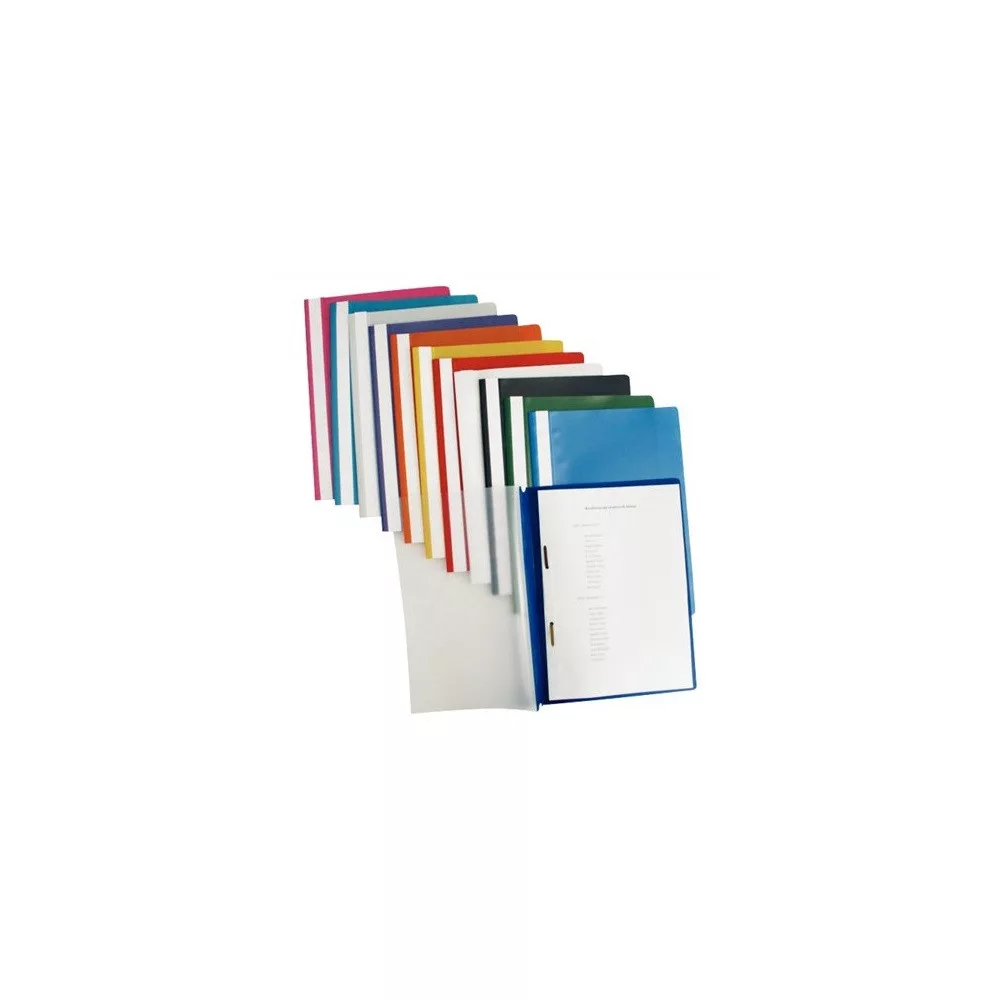 Gyorslefűző a lyukasztott lapok rendszerezésére és védelmére. Lapos, kétágú, 8cm hosszú fém szerkezet műanyag leszorítóval Az áttetsző, nem tükröződő borító látni engedi a dokumentum első oldalát Hosszú címketartó, a címke kivételét ill. behelyezését segítő kivágással 160 A4 lap kapacitás (80 g) 25 db / tasak Katalóguskód: 35837