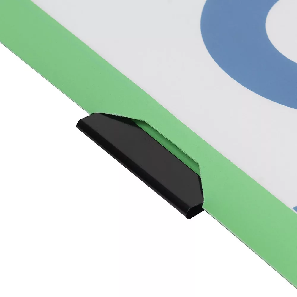 A borító gerincén elhelyezett fém klipp 30 lap befogadására alkalmas.