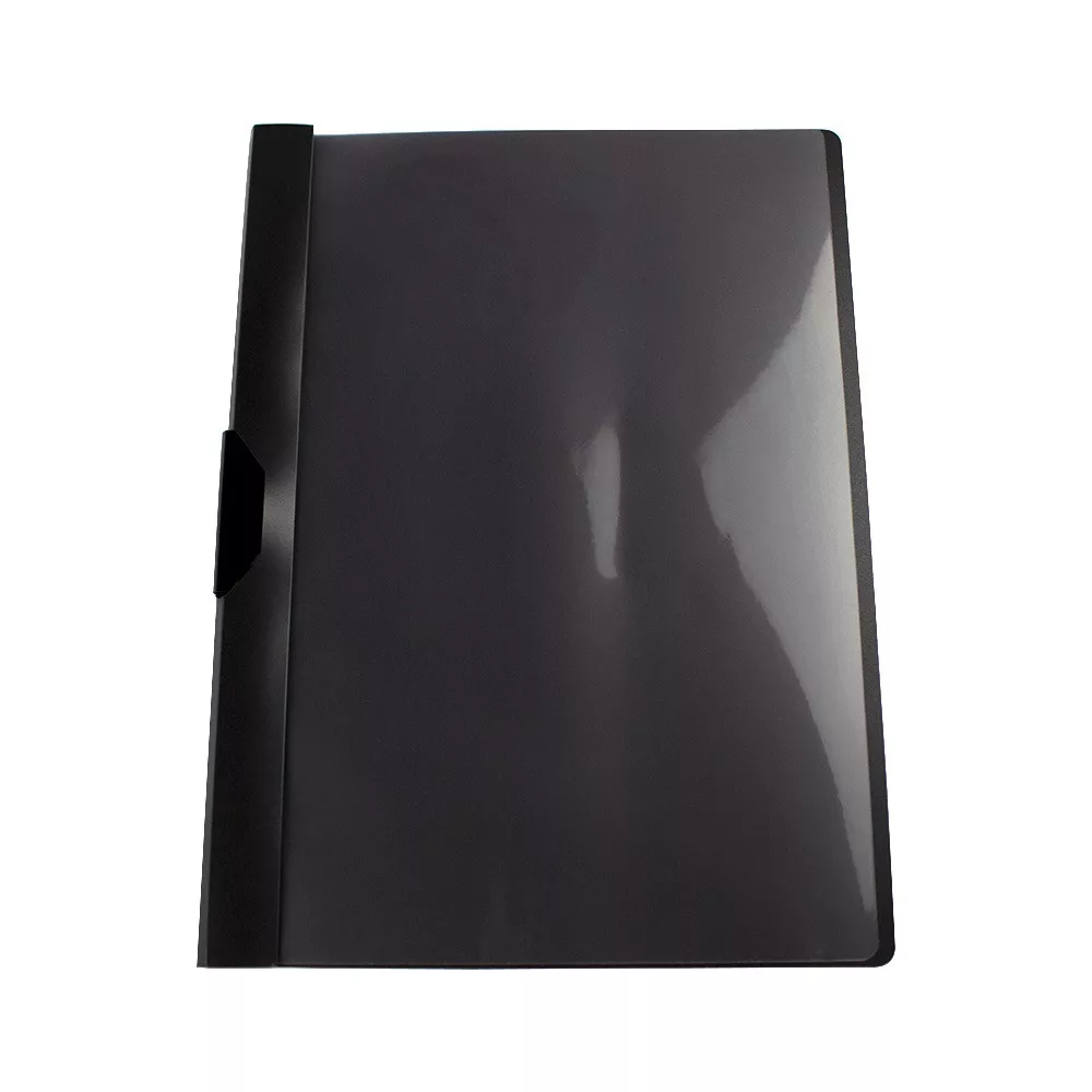 A/4-es lapok tárolására alkalmas műanyag fém klippes dosszié. A borító gerincén elhelyezett fém klipp 60 lap befogadására alkalmas. Előlapja áttetsző, színtelen műanyag. Hátlapja színes műanyag. Álló formátumú, három oldalon nyitott.12db/csomag, 120db/gyűjtő, 480db/karton Katalóguskód: 63828