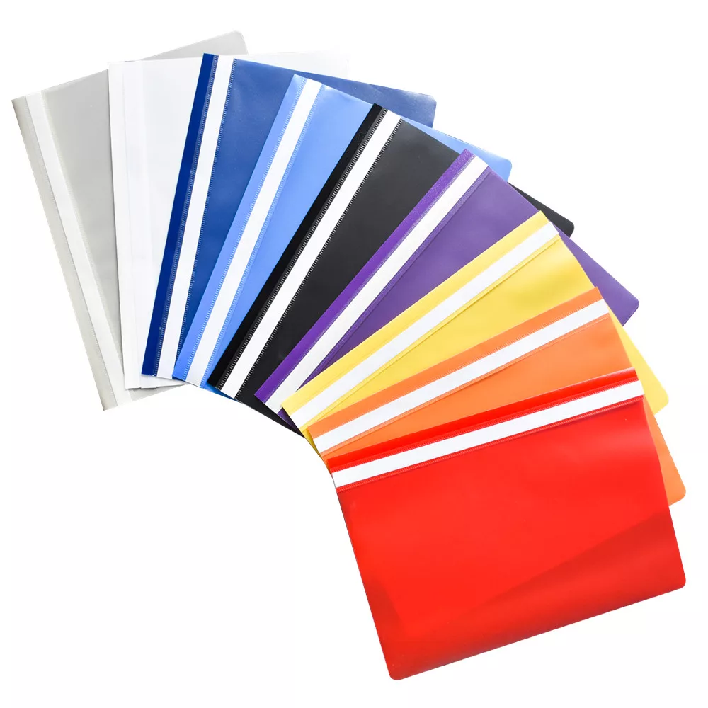 Gyorslefűző a lyukasztott lapok rendszerezésére és védelmére. Fém lefűző szerkezet műanyag leszorítóval. Az áttetsző, nem tükröződő borító látni engedi a dokumentum első oldalát. Hosszú címketartó, a címke kivételét ill. behelyezését segítő kivágással. Katalóguskód: 22773
