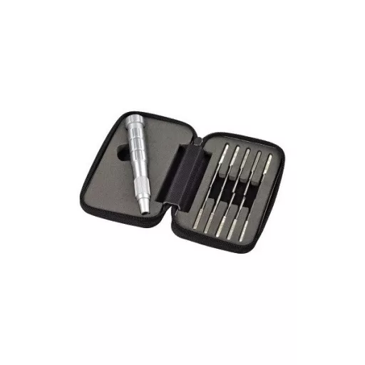 • Kompakt méretű csavarhúzó készlet cserélhető betétekkel