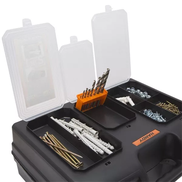 Handy tools 2 az 1-ben műanyag fúró + alkatrész tároló táska