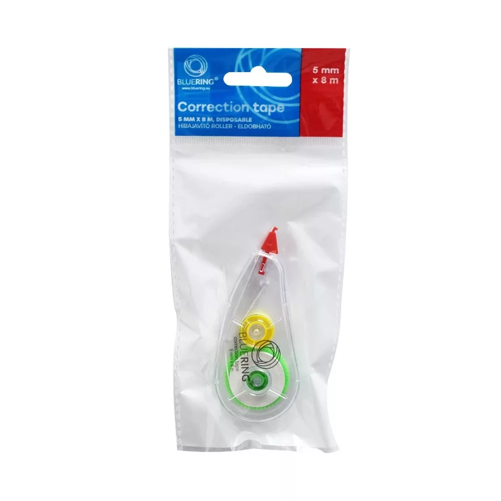 BLUERING hibajavító roller kézbe illő ergonomikus design. Könnyed, precíz javításokat tesz lehetővé a jobb és balkezes felhasználóknak egyaránt. Nagy szakítószilárdságú ultravékony PET-hordozón fehér hibajavító „festék” található, amely azonnal újraírható. Automatikus a szalagfeszesség. méret: 5mmx8m12db/gyűjtő360 db/karton Katalóguskód: 349