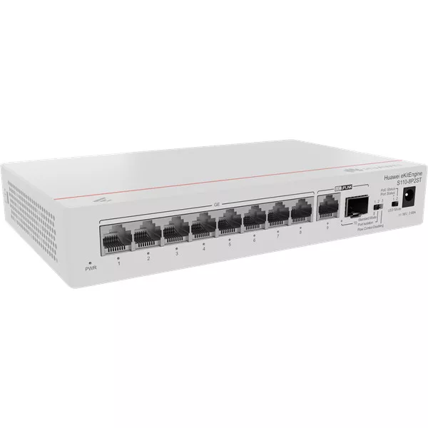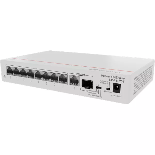 Huawei eKit Switch 8x1000Mbps (124W POE+) + 1x1000Mbps Uplink + 1x1GE (SFP), Nem menedzselhető, Asztali - S110-8P2ST