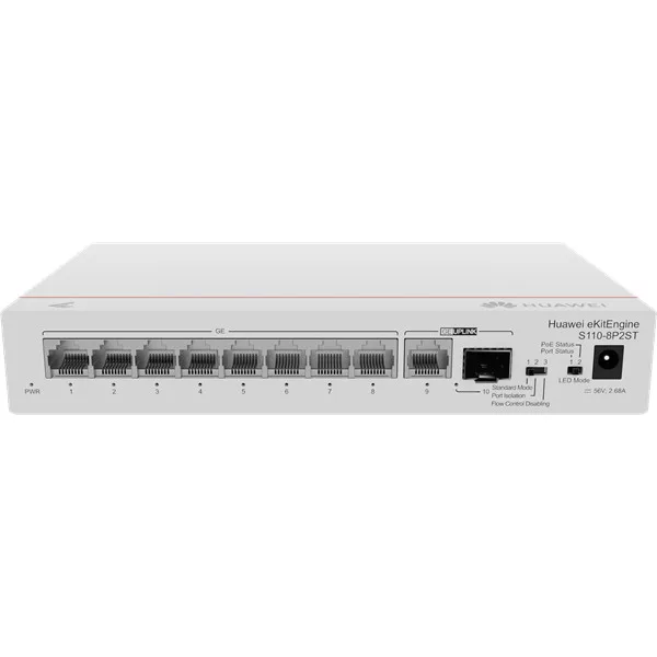 Huawei eKit Switch 8x1000Mbps (124W POE+) + 1x1000Mbps Uplink + 1x1GE (SFP), Nem menedzselhető, Asztali - S110-8P2ST Huawei eKit Switch 8x1000Mbps (124W POE+) + 1x1000Mbps Uplink + 1x1GE (SFP), Nem menedzselhető, Asztali - S110-8P2ST Huawei eKit Switch 8x1000Mbps (124W POE+) + 1x1000Mbps Uplink + 1x1GE (SFP), Nem menedzselhető, Asztali - S110-8P2ST