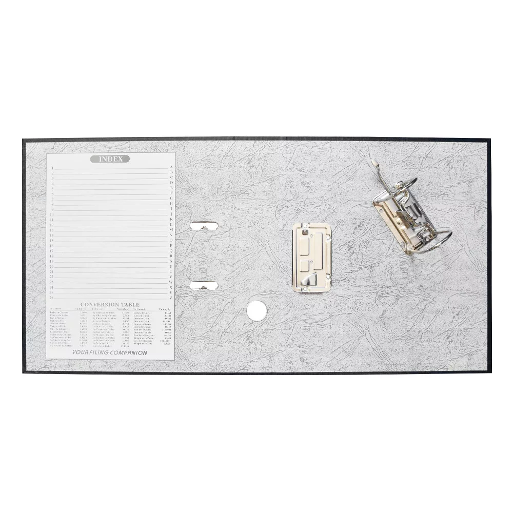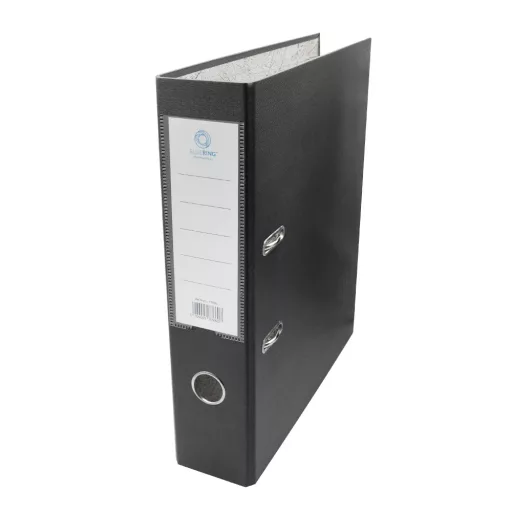 Emelőkaros iratrendező általános használatra. Kívül PP, belül fehér karton borítással, kihúzólyukkal. Cserélhető gerinccímke a feliratozáshoz. Tárolókapacitás 500 lap (A4 80gr.). A terméket lapra szerelve szállítjuk, a mellékelt emelőkaros szerkezet bepattintása gyors és egyszerű, 5 másodperc alatt elvégezhető és iratrendezőnk máris használatra kész! Katalóguskód: 12062