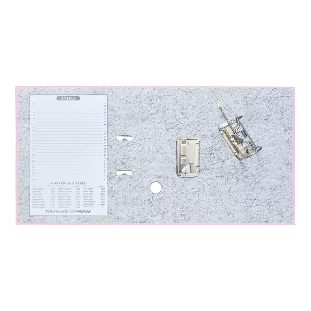 Emelőkaros iratrendező általános használatra. Kívül PP, belül fehér karton borítással, kihúzólyukkal. Cserélhető gerinccímke a feliratozáshoz. Tárolókapacitás 500 lap (A4 80gr.). A terméket lapra szerelve szállítjuk, a mellékelt emelőkaros szerkezet bepattintása gyors és egyszerű, 5 másodperc alatt elvégezhető és iratrendezőnk máris használatra kész! Katalóguskód: 12066