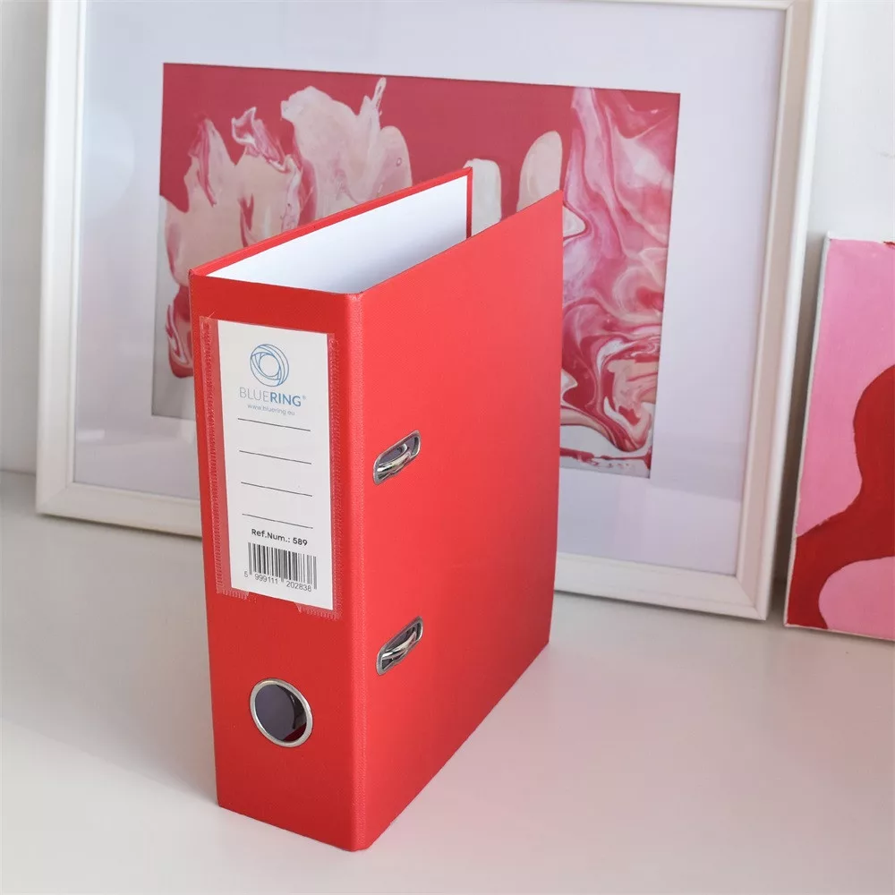 Emelőkaros iratrendező általános használatra. Kívül PP, belül fehér karton borítással, kihúzólyukkal. Cserélhető gerinccímke a feliratozáshoz. Tárolókapacitás 500 lap (A5 80gr.). A terméket lapra szerelve szállítjuk, a mellékelt emelőkaros szerkezet bepattintása gyors és egyszerű, 5 másodperc alatt elvégezhető és iratrendezőnk máris használatra kész! Katalóguskód: 39182