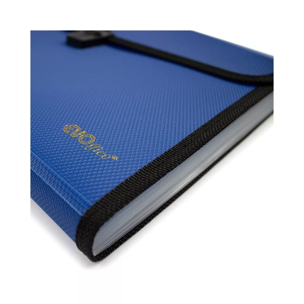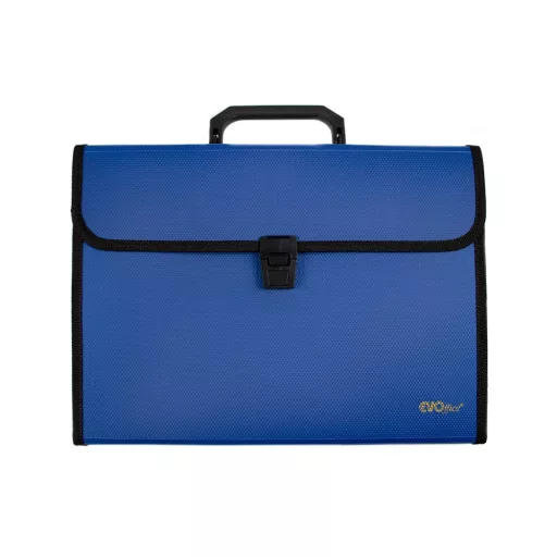 Praktikus és strapabíró EVOffice harmonikatáska 13 rekesszel, amely ideális dokumentumok rendszerezésére és biztonságos tárolására. A füles kialakításnak köszönhetően könnyen hordozható, míg a csatos zárás gondoskodik a tartalom védelméről. Tökéletes választás irodába, iskolába vagy akár otthoni használatra. Katalóguskód: 67514