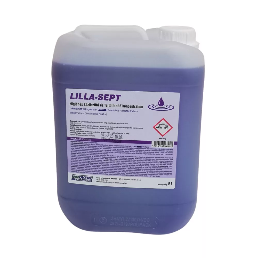 A Kézfertőtlenítő 5 liter LILLA-SEPT termék alkalmazásakor ügyeljen a biztonságra!