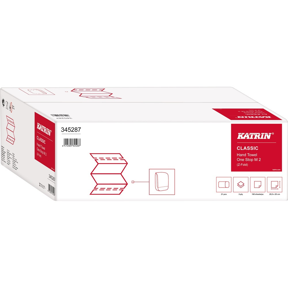 Biztosíts tiszta, professzionális mosdóélményt összehajtott Katrin papír kéztörlővel. Papírzsebkendő papír falra szerelt adagolókhoz nyilvános mosdókban és munkahelyeken. Z-foldos kéztörlő egy lappal érkezik az adagolóból, szabályozva a fogyasztást és a funkcionális kézhigiéniát teremtve.