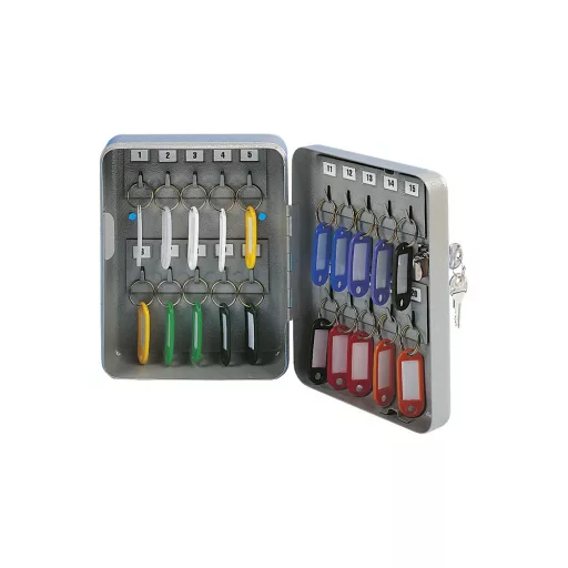 Ez a robusztus, fémből készült kulcsszekrény ideális megoldás akár 20 kulcs biztonságos tárolására és rendszerezésére. Főbb jellemzői: