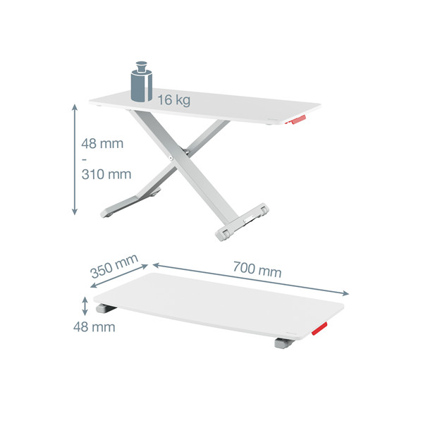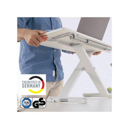 -stílusos, ergonómiai szempontok alapján tervezett ülő-álló munkaállomás kihúzható polccal a billentyűzet és egér számára, hogy egész nap lendületben maradhass