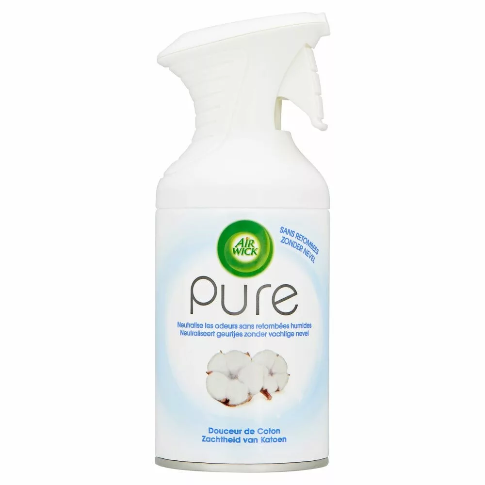 Air Wick Pure aeroszol fomulájának köszönhetően nedvesség kicsapódása nélkül szünteti meg a kellemetlen