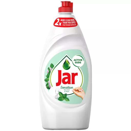 A Jar Sensitive Teatree & Mint mosogatószer tisztítóerejében mindenki megbízhat a mosogatás során! Minden cseppje rengeteg zsíros edényt elmosogat, ezért segít a megtakarításban. Mindegy mi jelenti a kihívást: a tányéroktól a poharakig, az edényektől a serpenyőkig - a Jar intenzív formulája könnyen átvágja magát a zsíron.