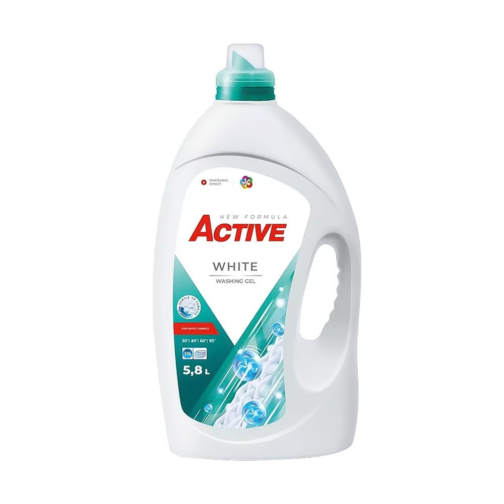 Mosógél 5,8 liter (116 mosás) fehér ruhákhoz Active White termék alkalmazásakor ügyeljen a biztonságra! Használat előtt mindig olvassa el a címkét és a használati útmutatót!