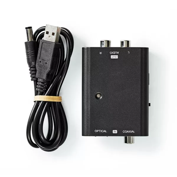 Nedis digitális audió konverter ACON2509BK, digitális bemenet koax/toslink, analóg kimenet RCA