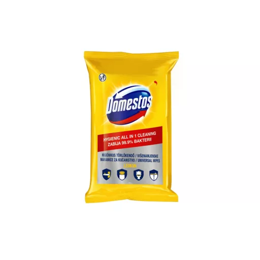 A Domestos Citrom illatú 60 darabos higiénikus törlőkendő használata egyszerű, praktikus. Visszazárható csomagolásának köszönhetően bárhova könnyen magunkkal vihetjük és nyilvános helyeken jó szolgálatot tehet, pl. kilincs, telefon, WC deszka stb. letörléséhez. Higiénikus tisztaságot biztosít a tisztított felületeken.